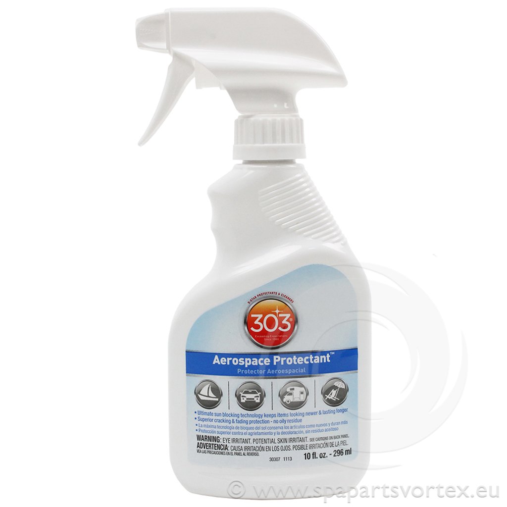 303 Aerospace Protectant – 296 ml skirtas apsaugoti ir prailginti vinilo kubilų uždangalų tarnavimo laiką, suteikiant apsaugą nuo UV spindulių ir sukuriant vandeniui atsparų barjerą. Jis padeda išlaikyti lankstumą ir apsaugo nuo įtrūkimų. Tinka naudoti ant vinilo, odos ir kitų plastikų, palieka švarų, neriebų paviršių.